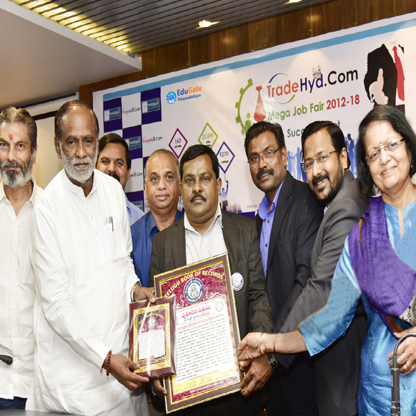 Edugate Foundation has organsed more than 163 job fairs in Telangana and Andhra Pradesh states in the name of TradeHyd.Com Mega Job Fair's and a total of 20,624 un-employees have got jobs at our job connect program. For this Telugu Book of records and High Range Book of Records have honored Edugate Foundation and its founder Mr. Venkateshwarlu Bulemoni.
